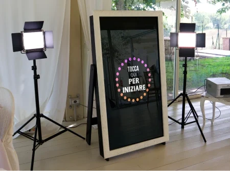 Magik Selfie è un photo booth innovativo, completo di specchio e fotocamera, ideale per matrimoni, feste ed eventi speciali. Con un semplice tocco, gli ospiti possono scattare selfie e registrare video divertenti in modo automatico. I momenti catturati possono essere condivisi istantaneamente sui social media o stampati come ricordi tangibili dell'evento.